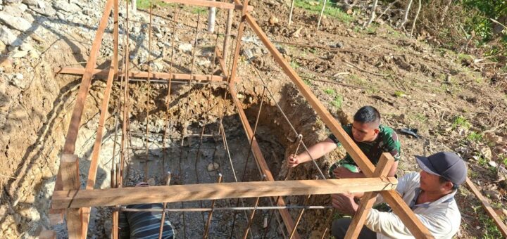 Babinsa Desa Gampa Pererat Silaturahmi Lewat Gotong Royong Pembangunan Rumah