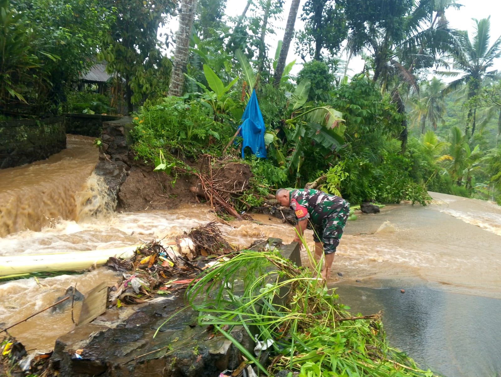 Aksi Cepat Babinsa Koramil 1626-02/Susut Tangani Dampak Bencana Alam Akibat Hujan Deras