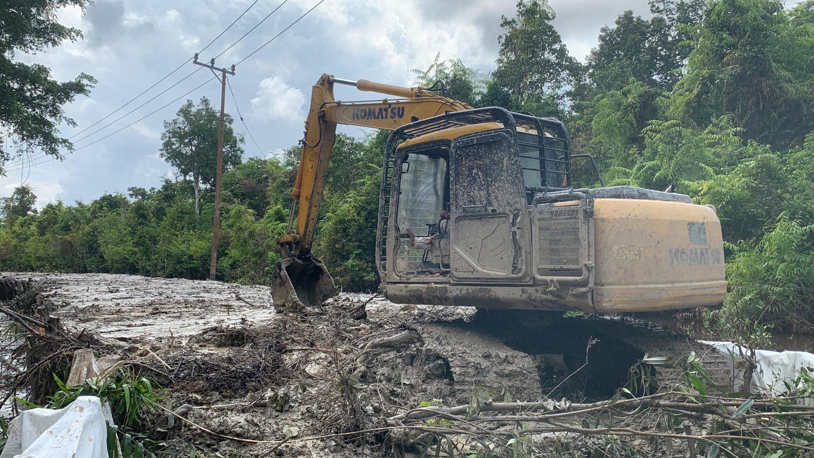 Operator alat berat bersama personel Satgas berkoordinasi dengan baik di lapangan untuk memastikan setiap tahap pengerjaan berjalan lancar dan efisien. Medan yang berlumpur dan tantangan cuaca tidak mengurangi semangat kerja mereka.