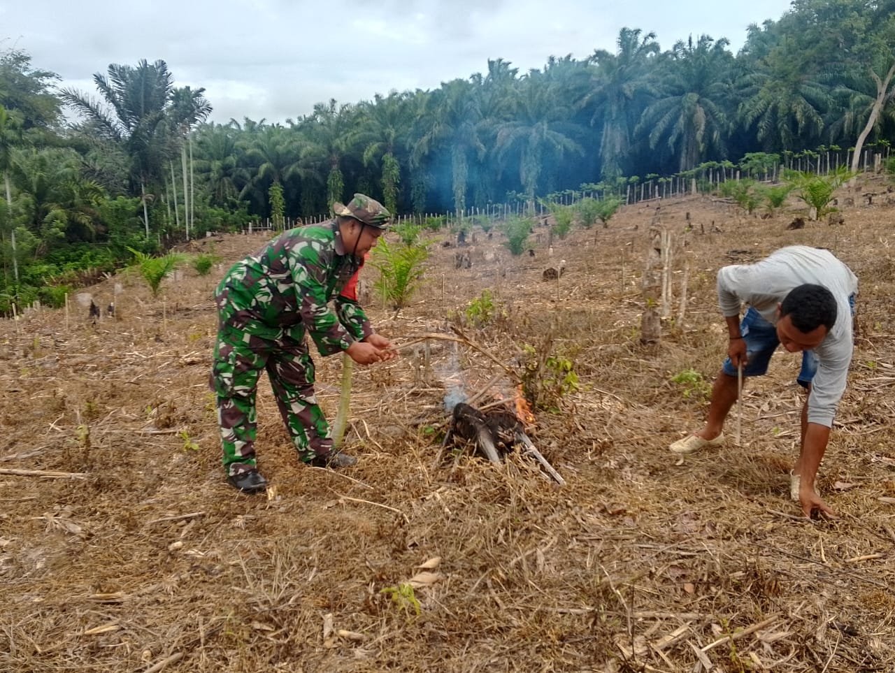 Anggota Satgas TMMD Ke-124 Kodim 0408/BS Bantu Warga Bersihkan Kebun Sawit
