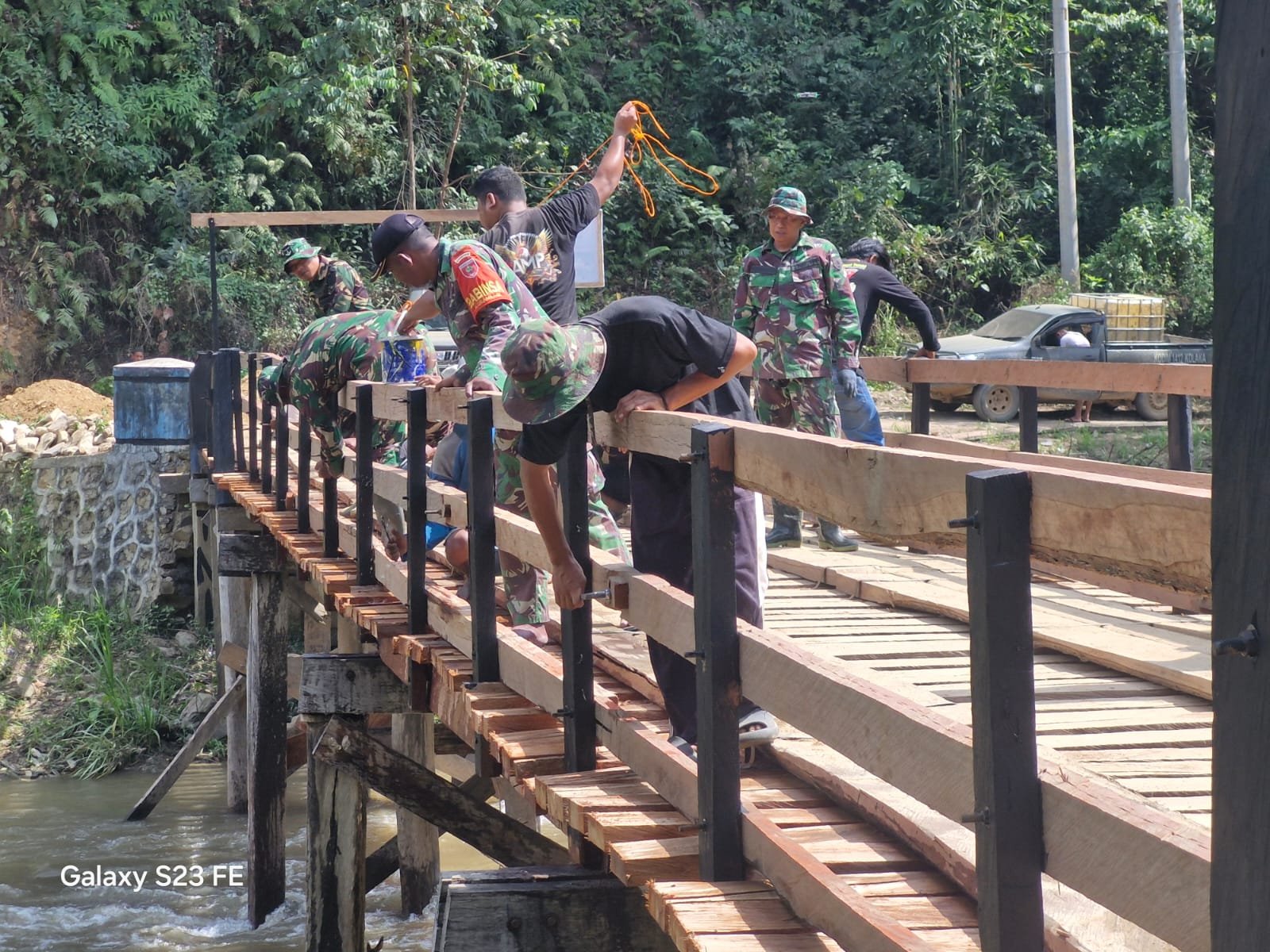 Salah satu anggota Satgas TMMD menyampaikan bahwa langkah tersebut merupakan bagian dari tahapan akhir sebelum jembatan dinyatakan siap digunakan masyarakat.