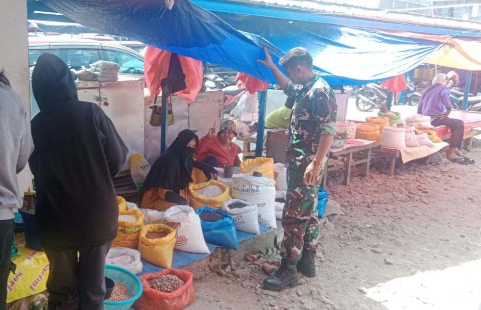 Babinsa Baula Pantau Ketersediaan dan Harga Bahan Pokok di Pasar Sentral Amparita