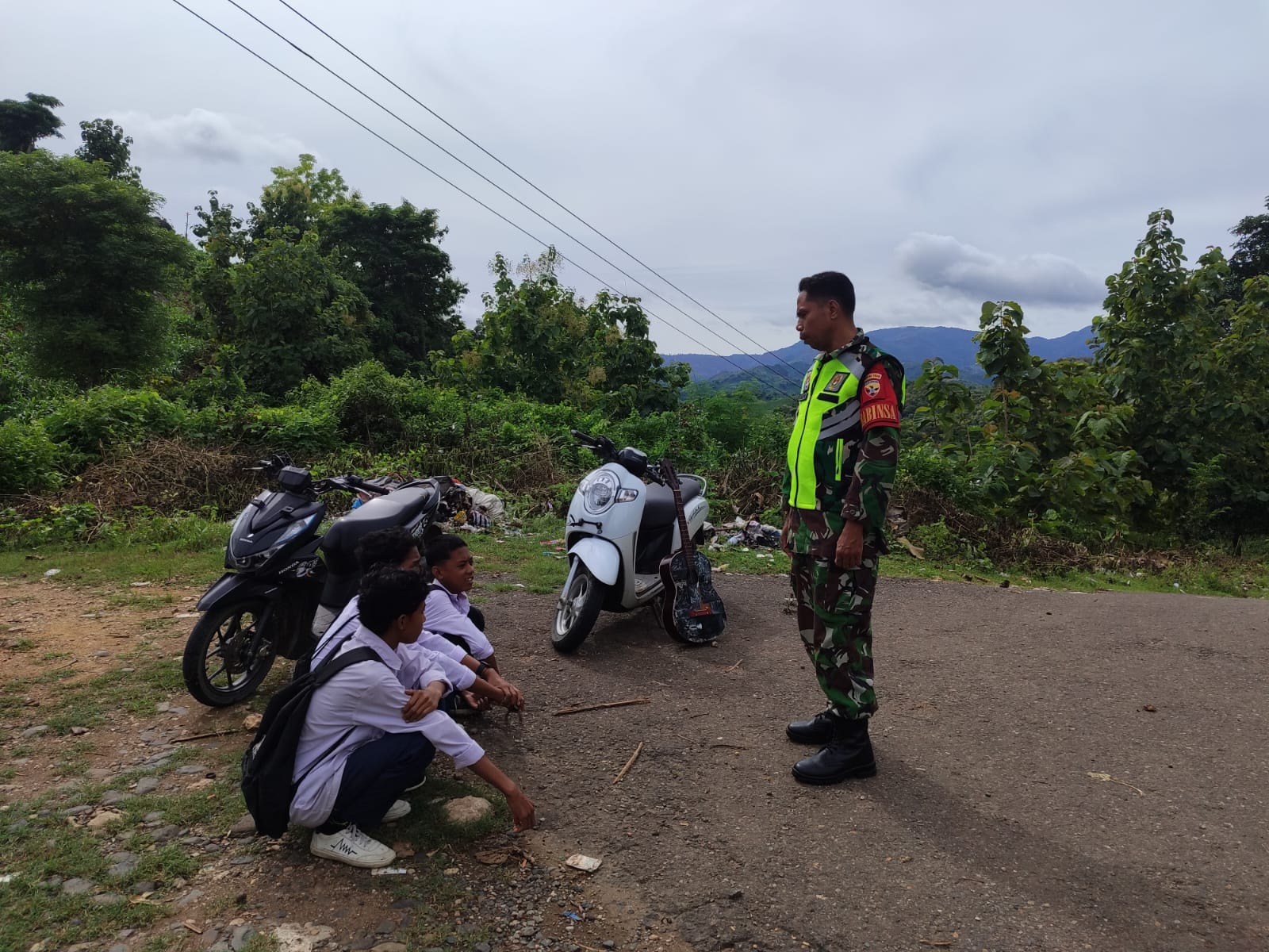 Kota Bima – Dalam upaya meningkatkan disiplin siswa, Serka Toto dari Koramil 1608-01/Rasanae melakukan pembinaan terhadap tiga pelajar SMP yang kedapatan nongkrong di luar sekolah pada pukul 10.00 WIB, Selasa (10/10/2023). Kegiatan ini berlangsung di sekitar area sekolah sebagai respons terhadap perilaku pelajar yang sering meninggalkan kelas saat jam belajar.