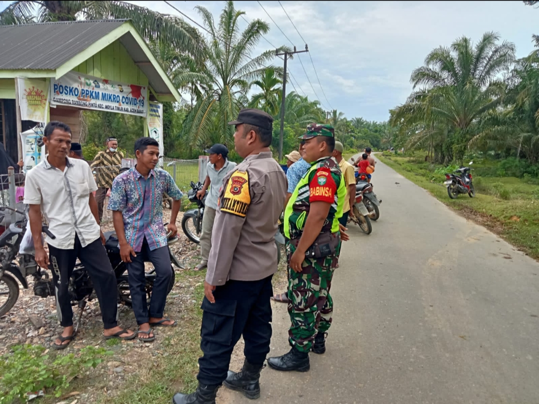 ACEH BARAT – Dalam upaya mempererat hubungan silaturahmi serta menjaga situasi keamanan dan ketertiban masyarakat (Kamtibmas) di wilayah binaan, Babinsa Koptu Iswahyudi dari Koramil 11/Woyla Timur bersama Bhabinkamtibmas Brigadir Dedi dari Polsek Woyla Timur melaksanakan kegiatan Komunikasi Sosial (Komsos) dengan warga Desa Rambong Pinto, Kecamatan Woyla Timur, Sabtu (01/11/2025).
