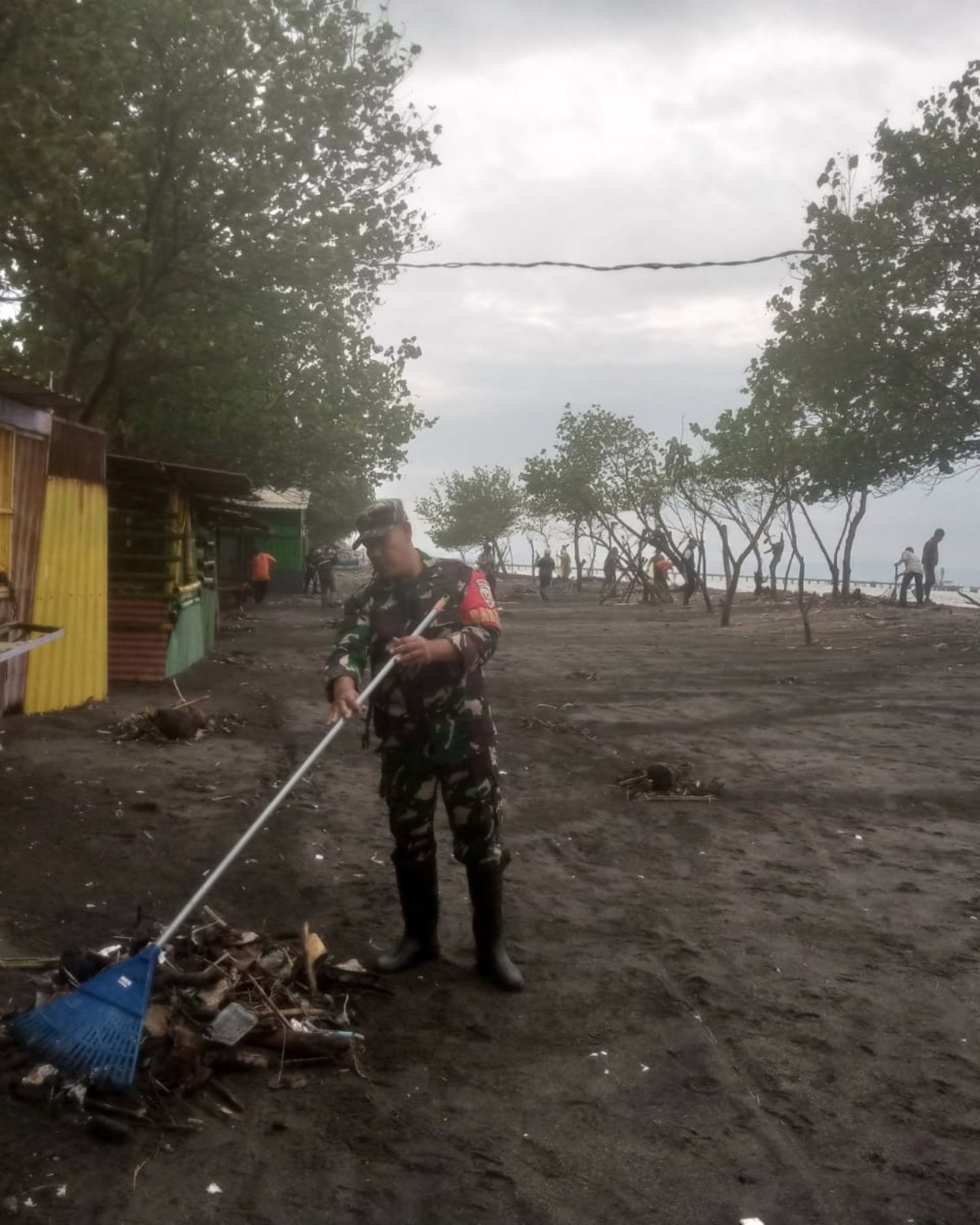 Kegiatan ini dipicu oleh dampak negatif banjir yang menyebabkan tumpukan sampah dan lumpur di kawasan pesisir. Sejak pagi, puluhan anggota Babinsa, staf kelurahan, dan warga setempat melakukan kerja bakti dengan menyisir garis pantai untuk mengumpulkan material yang tidak diinginkan.