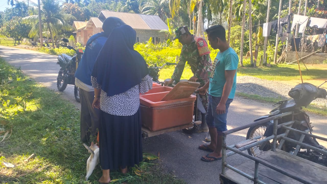 ACEH JAYA – Babinsa Posramil Darul Hikmah Kodim 0114/Aceh Jaya, Serda Syamsuar, melaksanakan komunikasi sosial (komsos) dengan pedagang ikan keliling, Sdr. Aftar, di Desa Reuntang, Kecamatan Darul Hikmah, Kabupaten Aceh Jaya, Kamis (15/01/2026).