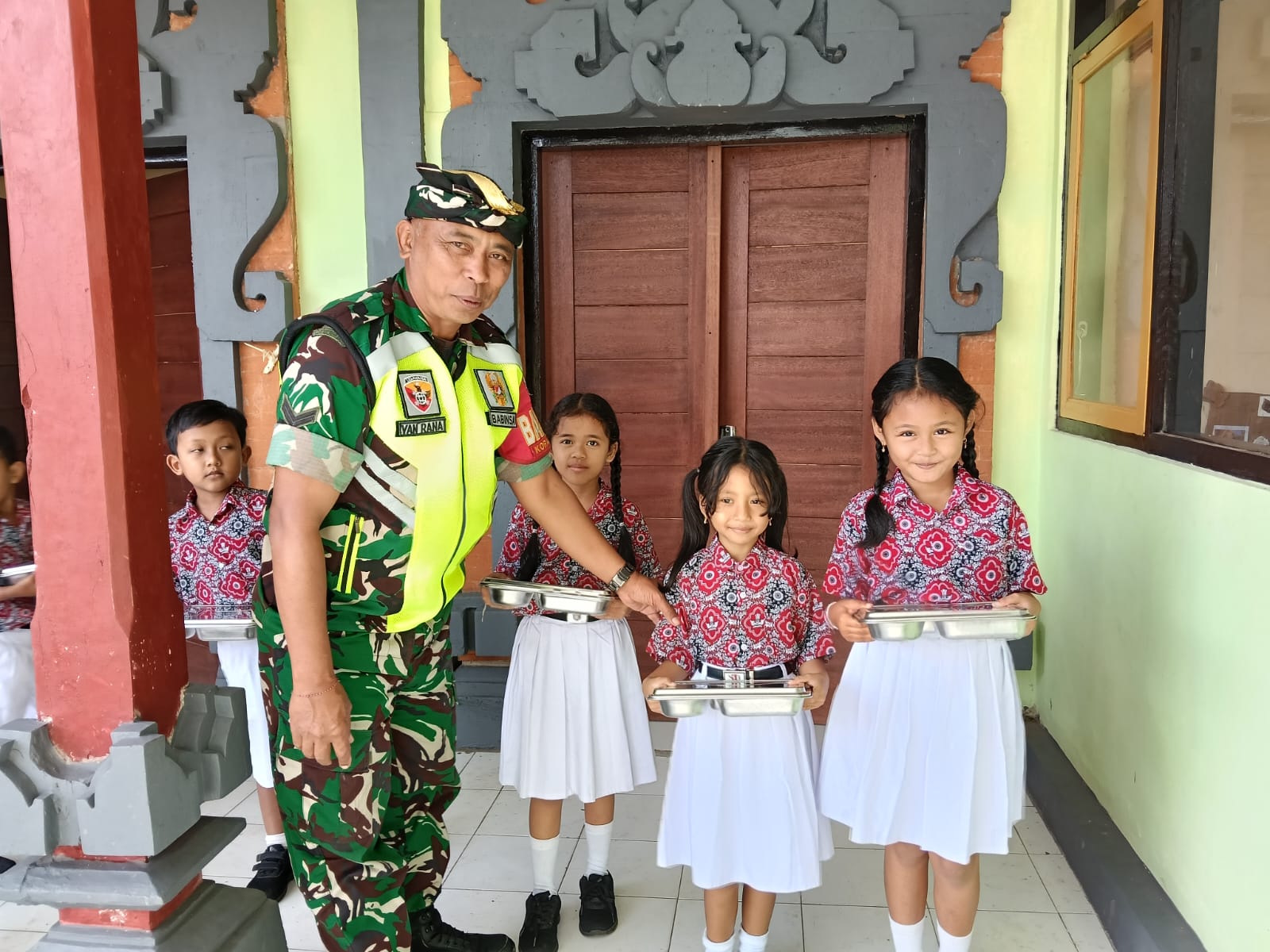Kehadiran Babinsa dalam kegiatan ini juga mencerminkan dukungan TNI Angkatan Darat terhadap program pemerintah yang berupaya meningkatkan pemenuhan gizi bagi anak-anak yang berada di usia sekolah. Sertu I Wayan Rana menegaskan bahwa pendampingan ini merupakan bagian dari tanggung jawab Babinsa untuk memastikan program pemerintah dapat berjalan efektif dan memberikan manfaat bagi masyarakat, khususnya bagi anak-anak sebagai generasi penerus bangsa.