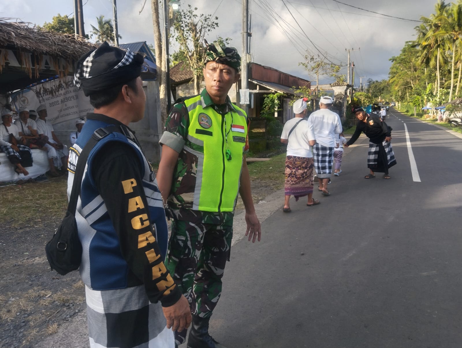 Dengan pengamanan yang dilakukan oleh Babinsa, rangkaian upacara Pujawali di Pura Dalem Songlandak dapat berlangsung dengan tertib, aman, dan penuh khidmat. (Pendim 1626/Bangli)