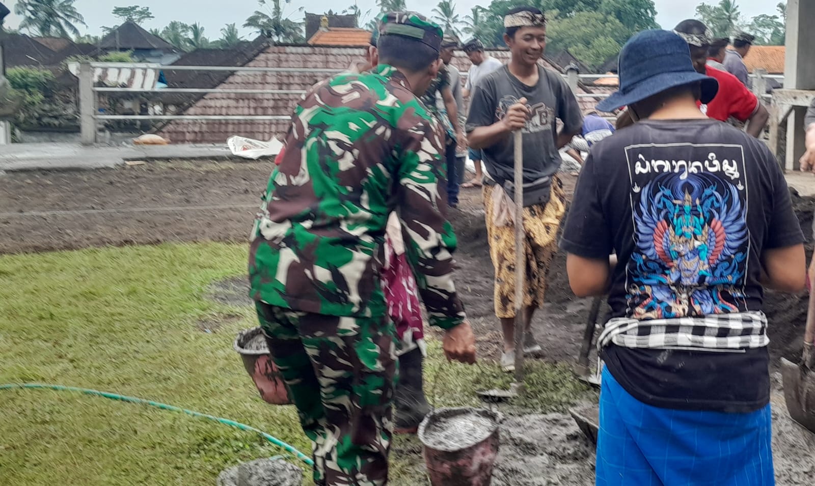 Babinsa Desa Penglumbaran Laksanakan Gotong Royong Rabat Beton di Pura Dalem