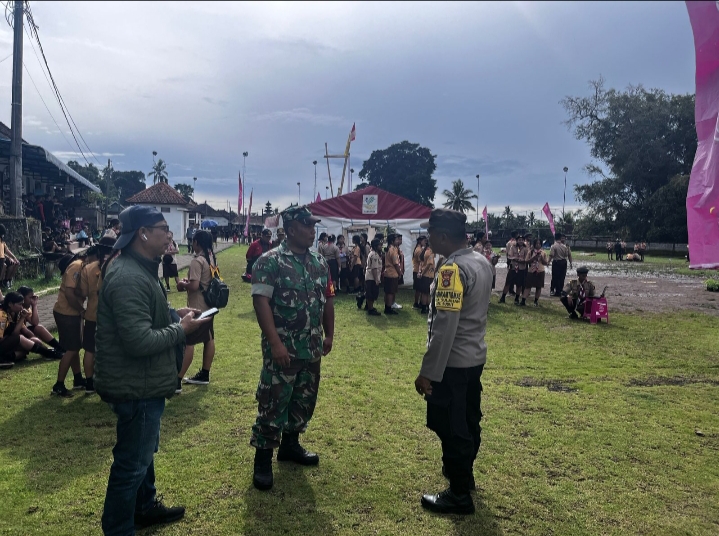 Bangli – Babinsa Desa Sulahan, Koptu I Made Sukadana, bersama Bhabinkamtibmas Desa Sulahan, Aiptu I Wayan Sukayasa, melaksanakan pemantauan dan pengamanan kegiatan Pembukaan Lokabara (Lomba Karya Pramuka Bhayangkara) yang diselenggarakan oleh Polres Bangli, bertempat di Lapangan Kecamatan Susut, Kabupaten Bangli, pada Sabtu Kemarin (10/1/2026).