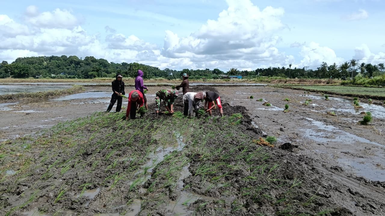 Babinsa Dukung Ketahanan Pangan dengan Penanaman Padi di Anakalang