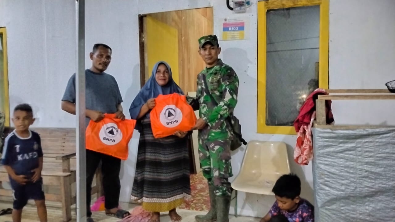 Aceh Utara – Setelah terjadinya bencana alam banjir bandang di Kecamatan Langkahan, anggota Babinsa dari Koramil 29/Langkahan Kodim 0103/Aceh Utara melakukan pendampingan dalam proses penyaluran bantuan yang diberikan oleh BNPB kepada masyarakat yang terkena dampak. Kegiatan ini berlangsung di hunian sementara di Desa Bukit Linteng, Dusun Tengoh pada Selasa malam, 7 April 2026.