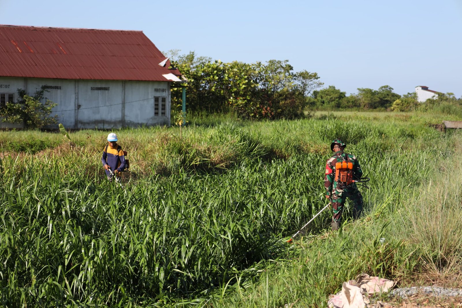 Mempawah – Semangat kebersamaan dan gotong royong kembali terlihat di Desa Sungai Purun Kecil, Kecamatan Sungai Pinyuh, Kabupaten Mempawah. Babinsa Kodim 1201/Mempawah turut serta membantu warga dalam kegiatan pemotongan rumput di lokasi pelaksanaan TNI Manunggal Membangun Desa (TMMD) Reguler ke-124.