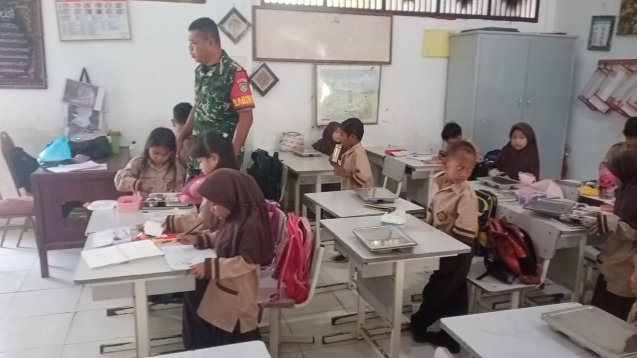 ACEH BARAT – Sertu Agustino, Babinsa Koramil 07/Johan Pahlawan Kodim 0105/Aceh Barat, melaksanakan pemantauan kegiatan pemberian makan bergizi gratis kepada siswa-siswi Sekolah Dasar Negeri (SDN) 14 yang berlokasi di Jalan Manek Roo, Desa Ujung Baroh, Kecamatan Johan Pahlawan, Kabupaten Aceh Barat, Jumat (10/10/2025).
