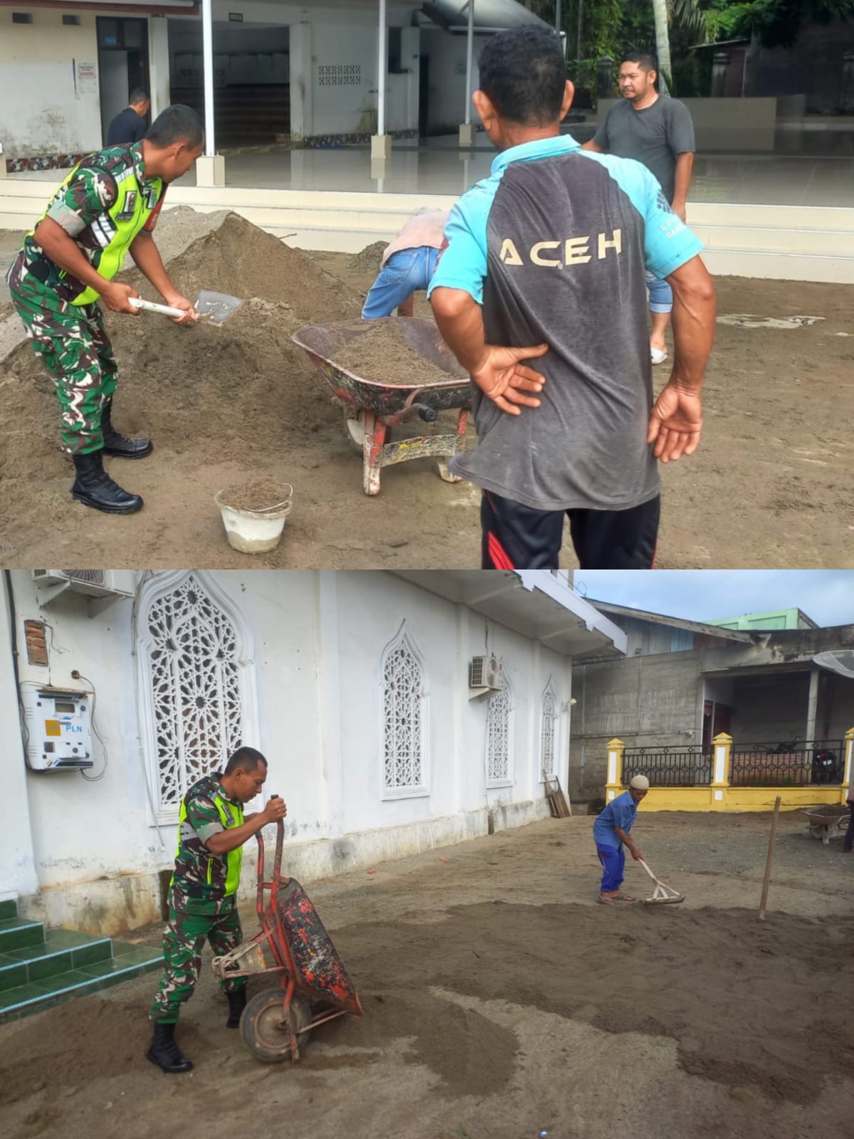 ACEH BARAT – Dalam rangka menyambut Hari Raya Idulfitri, Babinsa Koramil 08/Arongan Lambalek Kodim 0105/Aceh Barat, Sertu Agus S, bersama masyarakat melaksanakan kegiatan gotong royong membersihkan bagian dalam dan pekarangan masjid di Desa Drien Rampak, Kecamatan Arongan Lambalek, Kabupaten Aceh Barat, Jumat (20/03/2026).