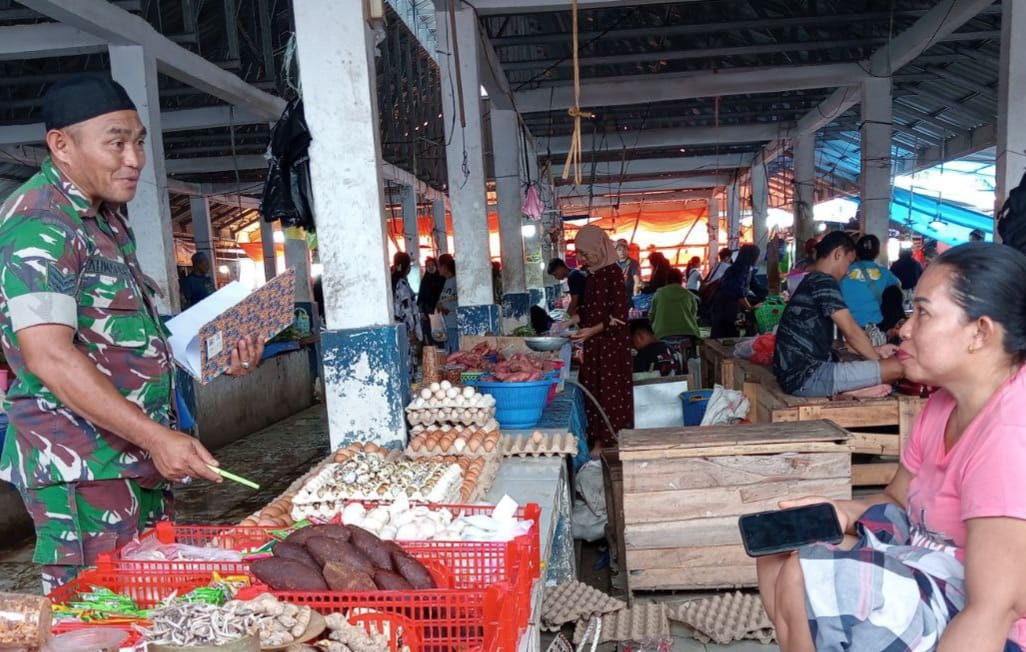 Babinsa Koramil 1420-01/Panca Lautang Awasi Stabilitas Harga Pangan di Pasar Bilokka