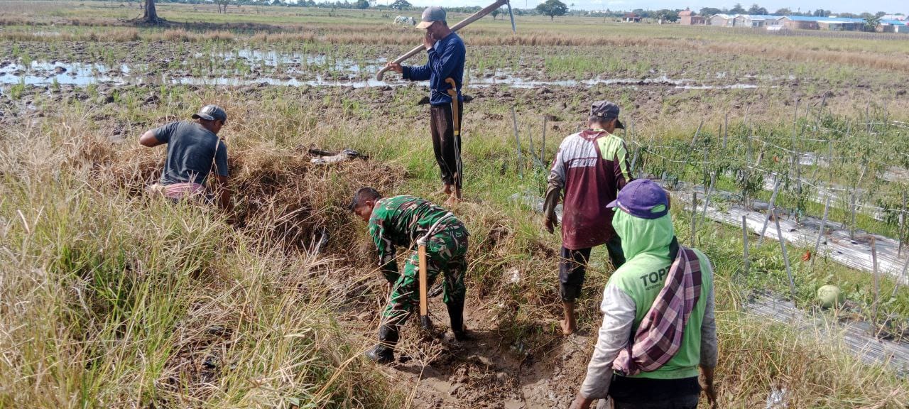 Babinsa Koramil 1420-02/Tellu Limpoe Bersama Petani Lakukan Pembersihan Irigasi di Baula untuk Ketahanan Pangan