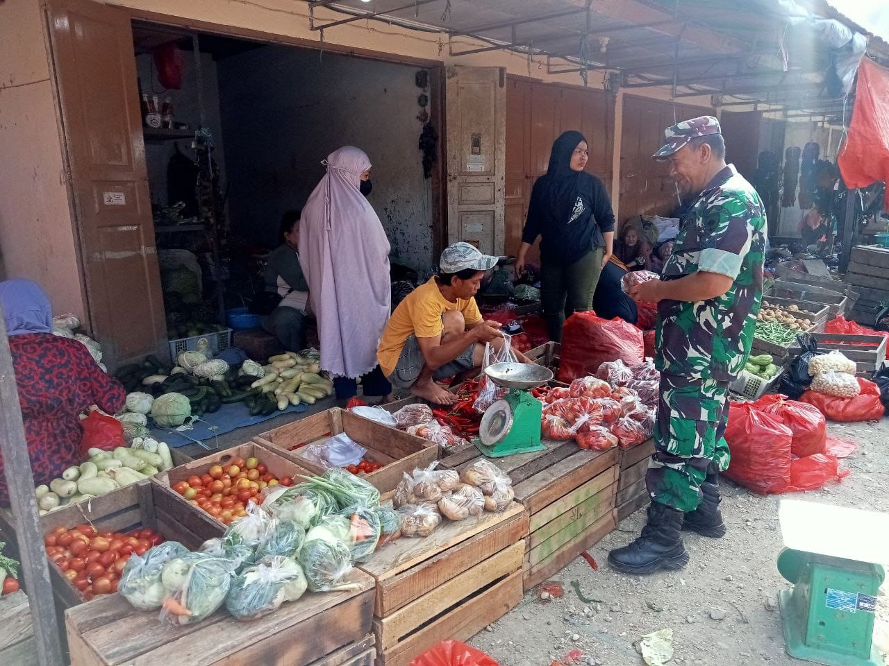 Babinsa Koramil 1420-06/Panca Rijang Lakukan Pemantauan Harga Pangan di Pasar Sentral Rappang