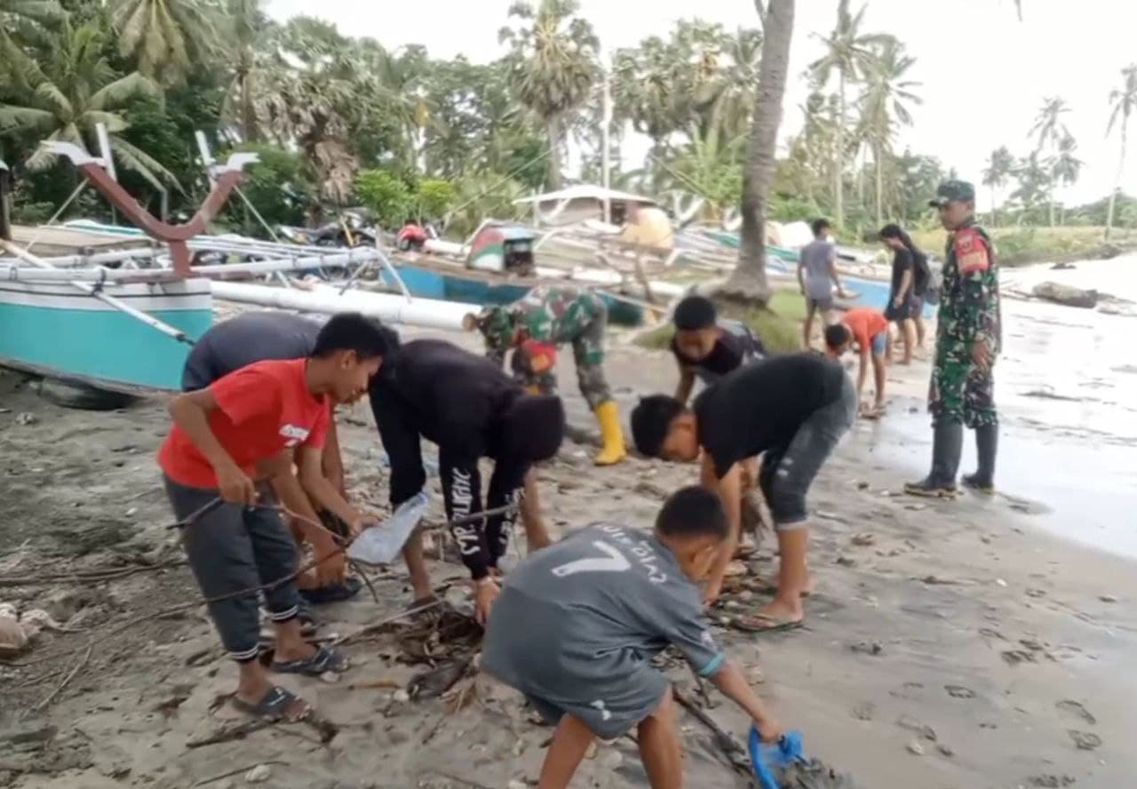 Babinsa Koramil 1425-01/Binamu Bersama Pemuda Gelar Kerja Bakti Pembersihan Pesisir Pantai