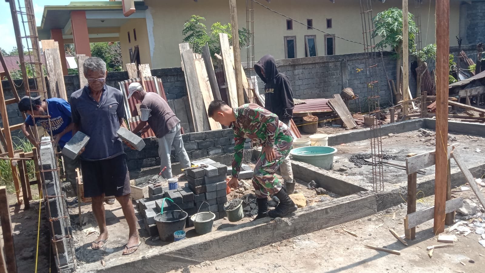 Dalam kegiatan tersebut, Kopda Syahrul turut membantu warga menyusun batu bata untuk pembangunan rumah milik Bapak Muhammad Nurdin. Dengan penuh semangat dan kebersamaan, Babinsa bersama masyarakat bergotong royong menyelesaikan pekerjaan agar rumah segera dapat ditempati.