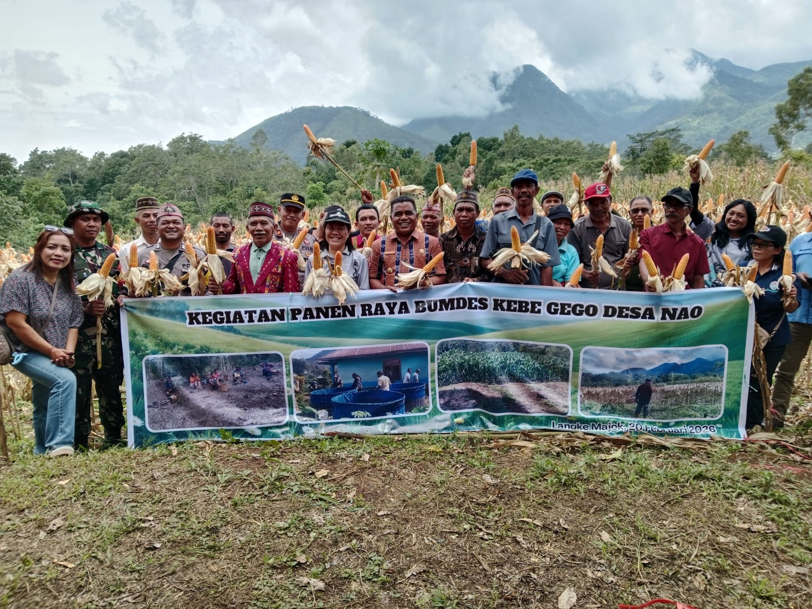 Manggarai – Dukungan terhadap program ketahanan pangan terus ditunjukkan oleh aparat teritorial. Pada Jumat, 20 Februari 2026, Sertu Kusumaningrat, anggota Babinsa Koramil 1612-05/Satar Mese, turut hadir dalam kegiatan Panen Raya Ketahanan Pangan yang diselenggarakan oleh BUMDes Kebe Gego di Desa Nao, Kecamatan Satar Mese Utara, Kabupaten Manggarai.