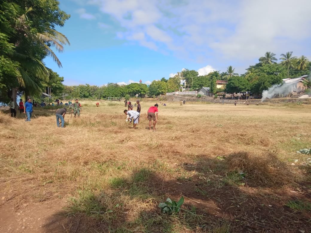 Babinsa Koramil 1624-05/Solor Gelar Karya Bakti Bersihkan Lapangan Sepak Bola di Desa Lemanu