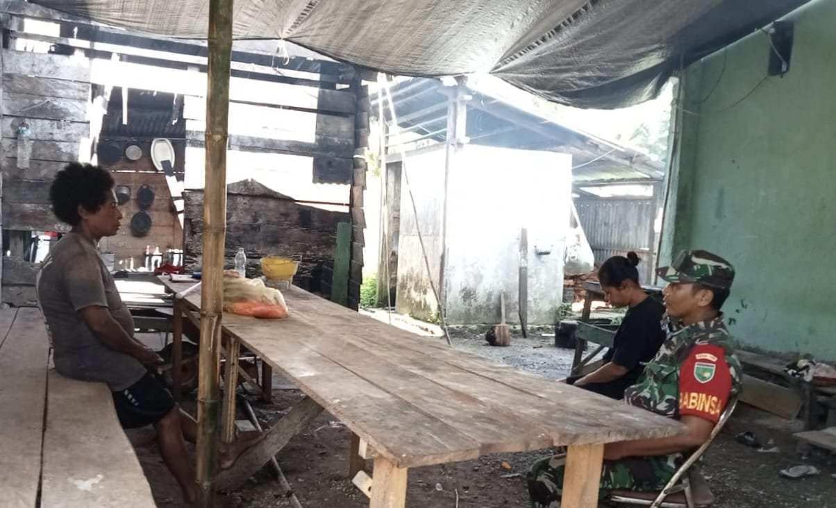 Napan – Dalam rangka meningkatkan peran Babinsa guna mengetahui perkembangan di masyarakat, Babinsa Koramil 02/Napan Kodim 1705/Nabire , Sertu Suhartanto Rais melaksanakan giat Komunikasi Sosial (Komsos) dengan warga binaannya di Kampung Waenami Distrik Napan Kab. Nabire, Minggu 28 September 2025.