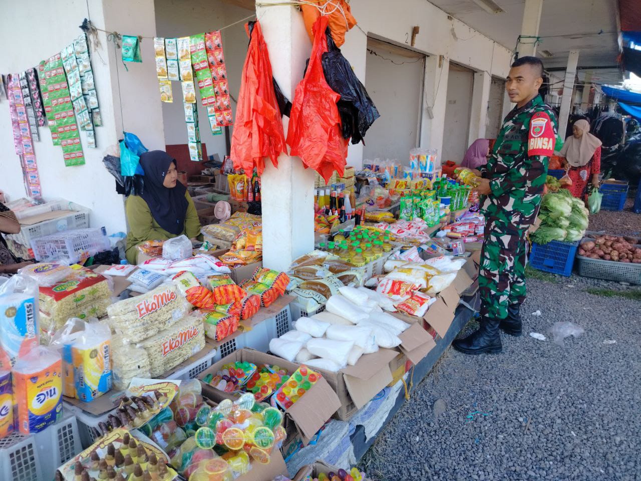 “Kami melakukan pengecekan secara rutin untuk menghindari kelangkaan dan harga yang tidak wajar, agar daya beli masyarakat tetap terjaga,” ungkap Sertu Zainuddin saat berbincang dengan pedagang. Kegiatan ini juga dimanfaatkan untuk menjalin komunikasi sosial (Komsos) dengan warga dan pedagang, guna mendengar aspirasi serta menjaga keamanan di lingkungan pasar.