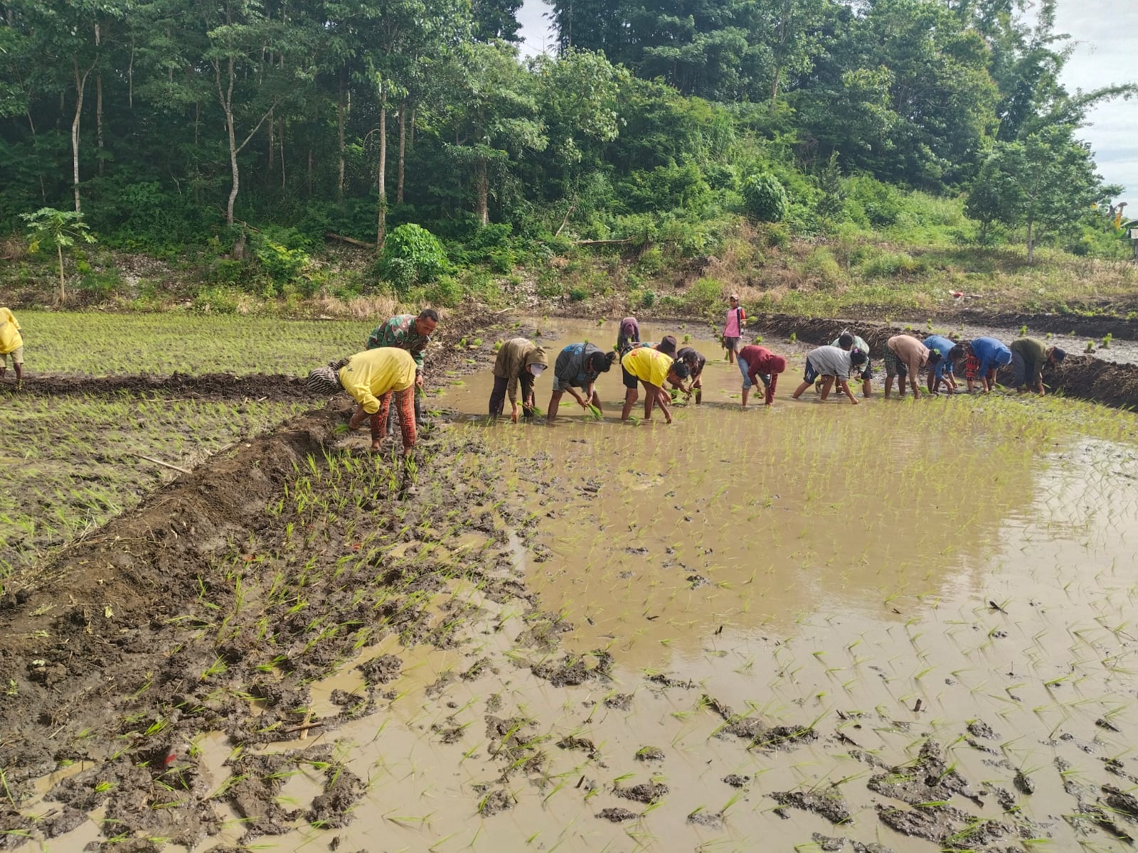 SUMBA TENGAH – Serka Masrin, anggota dari Koramil 1613-03/Katikutana, telah melaksanakan kegiatan komunikasi sosial (komsos) Hanpangan dengan warga setempat, yang terdiri dari membantu proses penanaman padi di Desa Malinjak, Kecamatan Katikutana Selatan, Kabupaten Sumba Tengah pada Selasa, 3 Februari 2026.