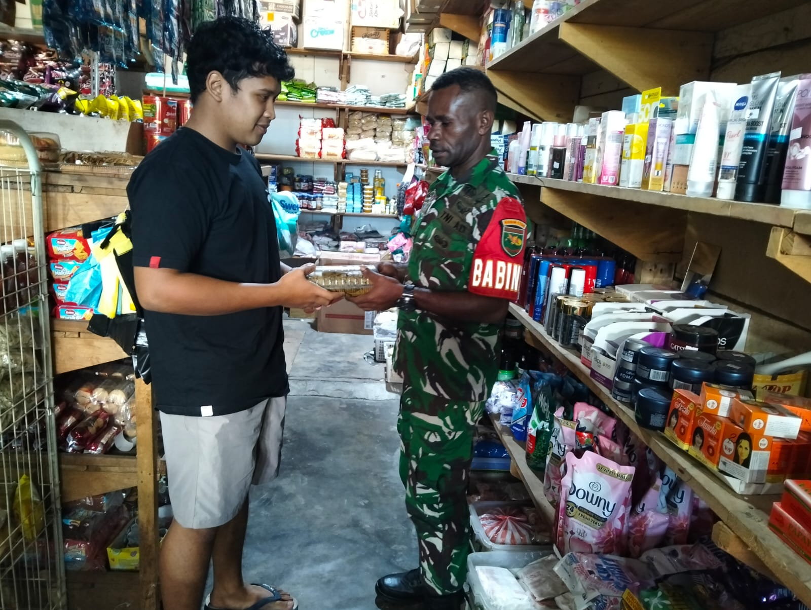 Babinsa Koramil Moanemani Gelar Kegiatan Sosial di Pasar Ikebo untuk Perkuat Komunikasi dengan Warga