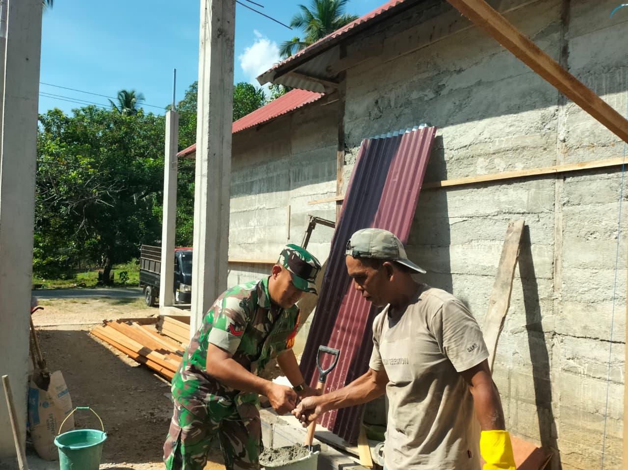 Babinsa Koramil Panga Bantu Pembangunan Rumah Warga Binaan