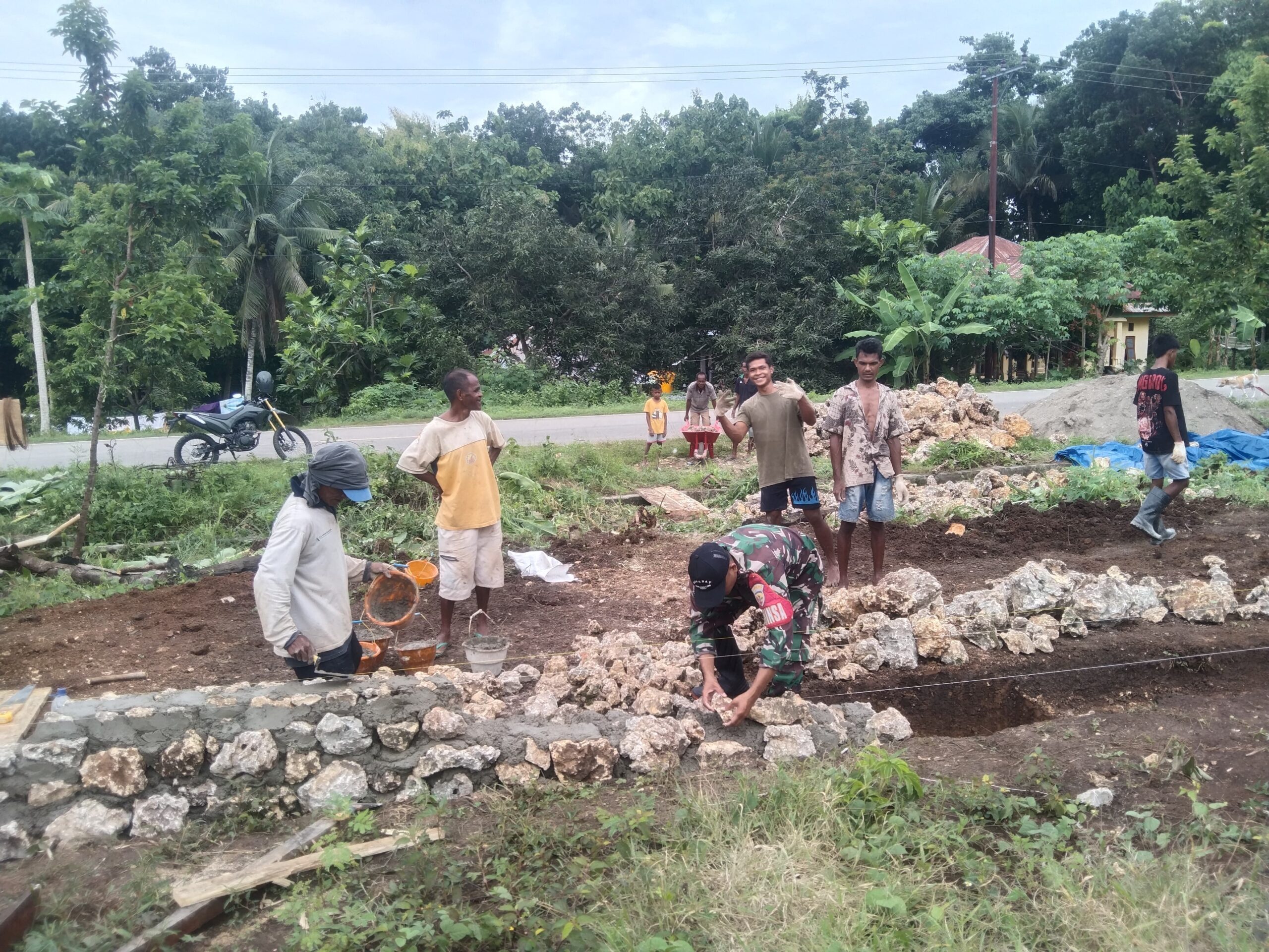 SUMBA BARAT – Pada hari Jumat, 16 Januari 2026, Sertu I Gusti Kade Arta, anggota Babinsa Koramil 02/Walakaka Kodim 1613/Sumba Barat, turun langsung dalam kegiatan pendampingan pembangunan pondasi Koperasi Desa Merah Putih yang berlokasi di Desa Rua, Kecamatan Wanukaka, Kabupaten Sumba Barat. Kegiatan ini bertujuan untuk memastikan bahwa proses pembangunan berlangsung sesuai rencana dan mematuhi standar keselamatan yang telah ditetapkan.