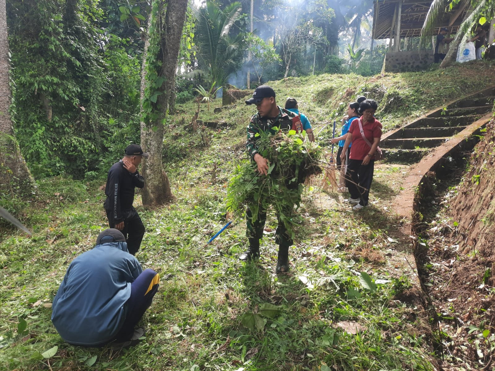 Babinsa Manduang Kampanyekan Pola Hidup Bersih Dan Sehat Melalui Kerja Bhakti Bersih Lingkungan
