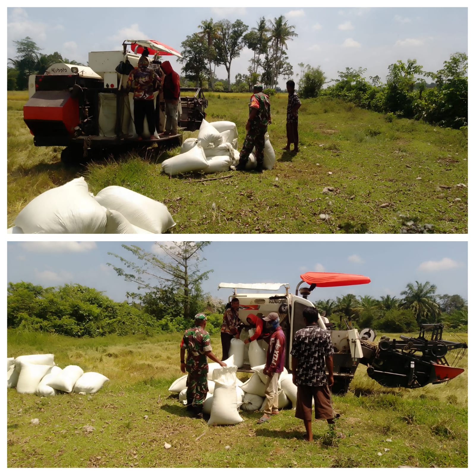 Di sela-sela kegiatannya, Serka Syamsul mengatakan bahwa pada panen padi di areal pertanian, sebagian besar warga sudah menggunakan mesin modern berupa alat pemanen padi combine.