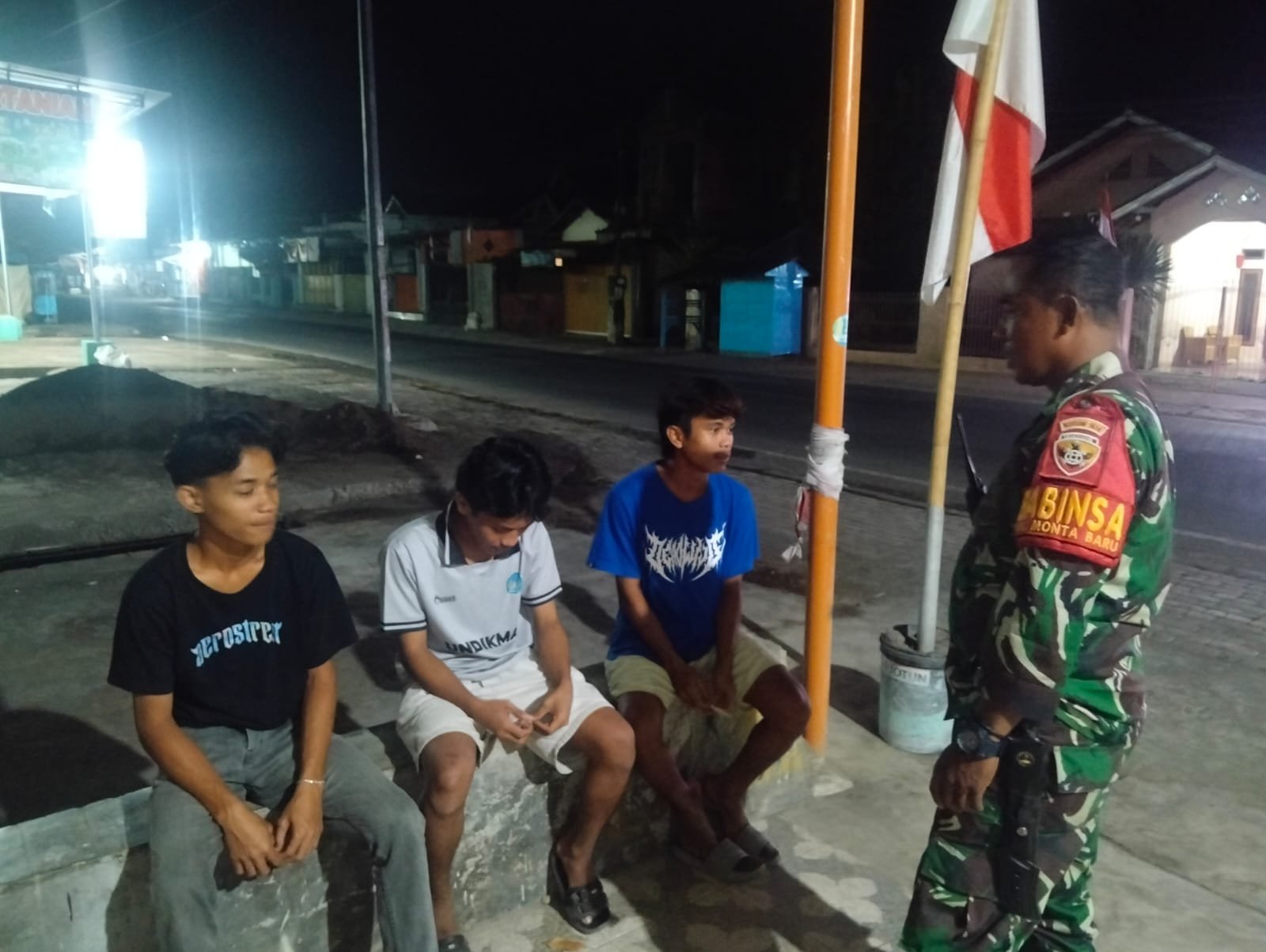 Babinsa Monta Baru Gelar Patroli Malam, Edukasi Remaja Cegah Gangguan Kamtibmas