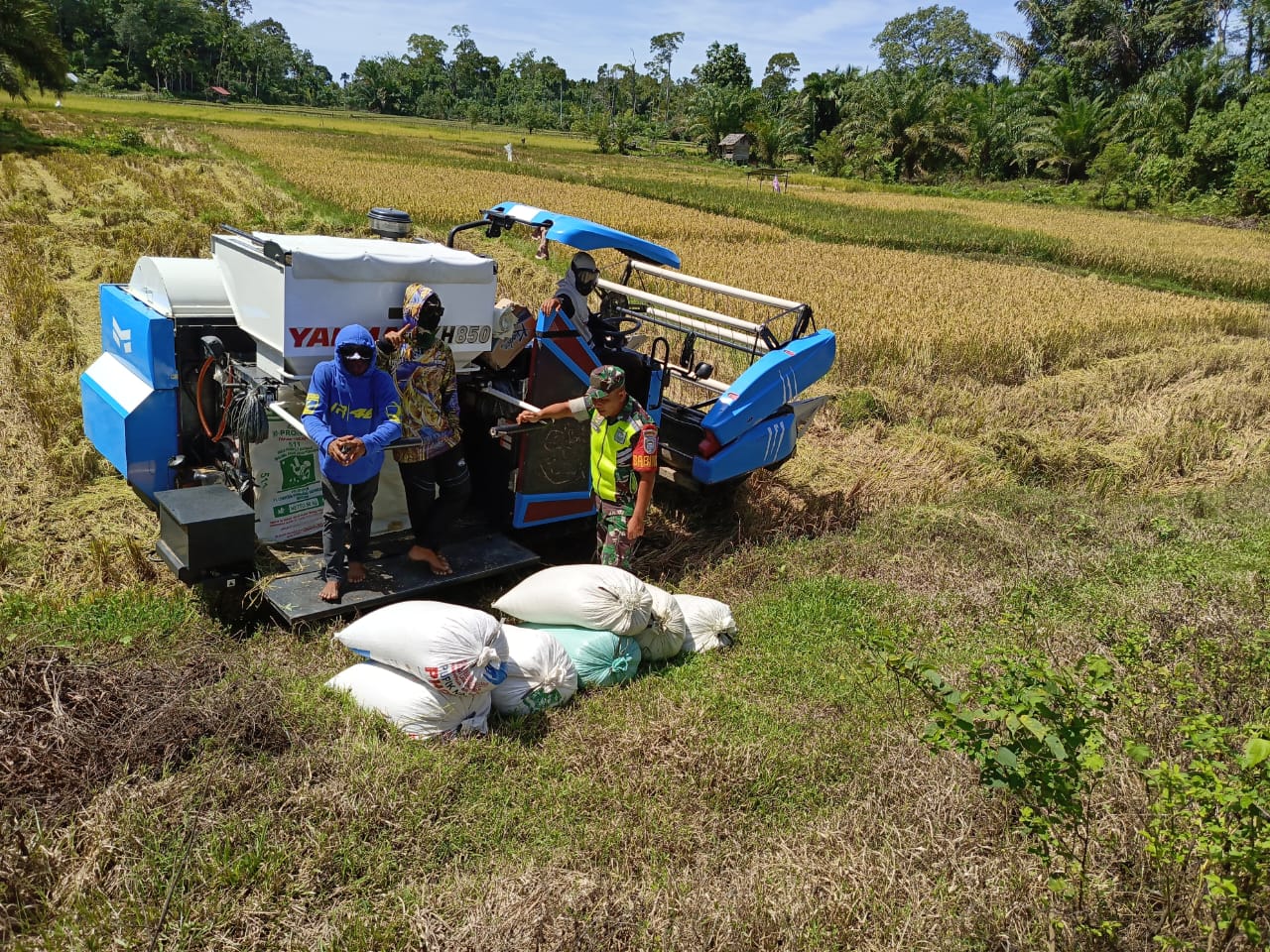 ACEH BARAT – Babinsa Posramil 12/Panton Reu, Kodim 0105/Aceh Barat, Serka Julha Pasi, melaksanakan pendampingan kepada petani di wilayah binaannya saat panen padi di salah satu lahan persawahan Gampong Panton Reu, Kecamatan Panton Reu, Rabu (10/09/2025).