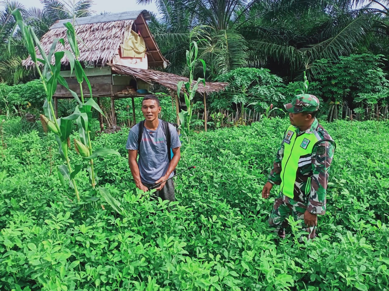 Babinsa Posramil 05/PC Dampingi Petani Cek Perkembangan Kacang Tanah