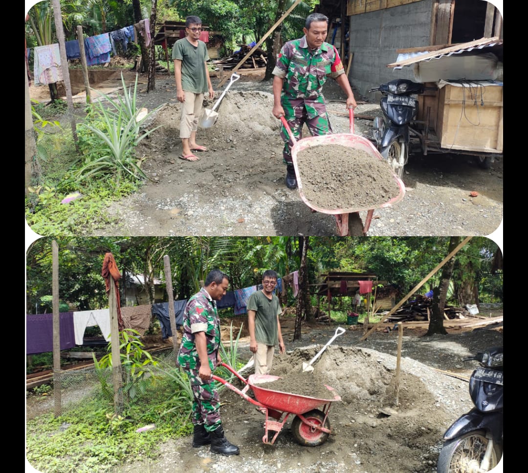 Babinsa Posramil 05/PC Terus Lakukan Gotong Royong Angkut Pasir, Bangun Rumah Warga