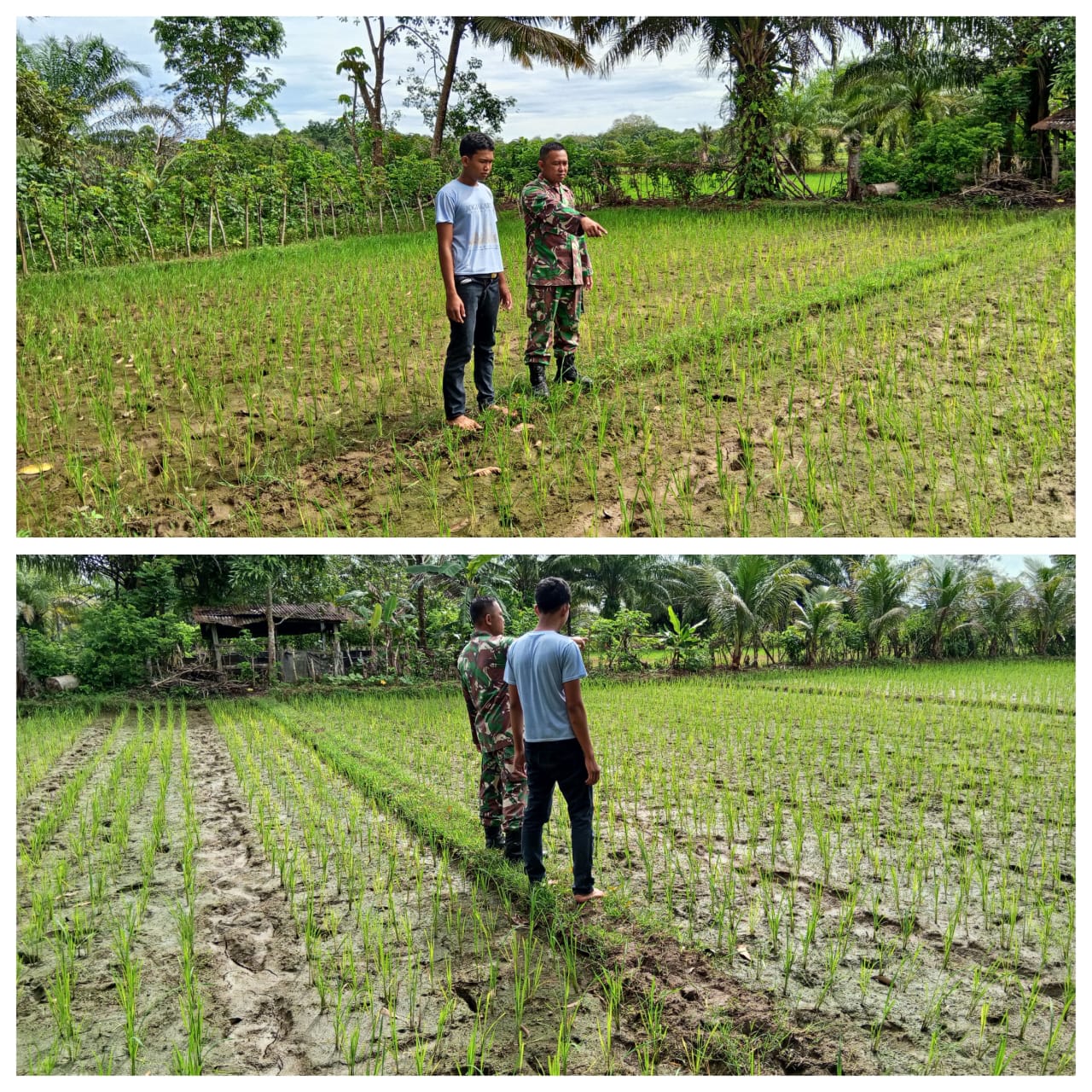 ACEH BARAT – Babinsa Posramil 06/Bubon Kodim 0105/Aceh Barat melaksanakan pendampingan swasembada pangan dengan memantau perkembangan pertumbuhan padi milik petani di Desa Liceh, Kecamatan Bubon, Selasa (20/01/2026).