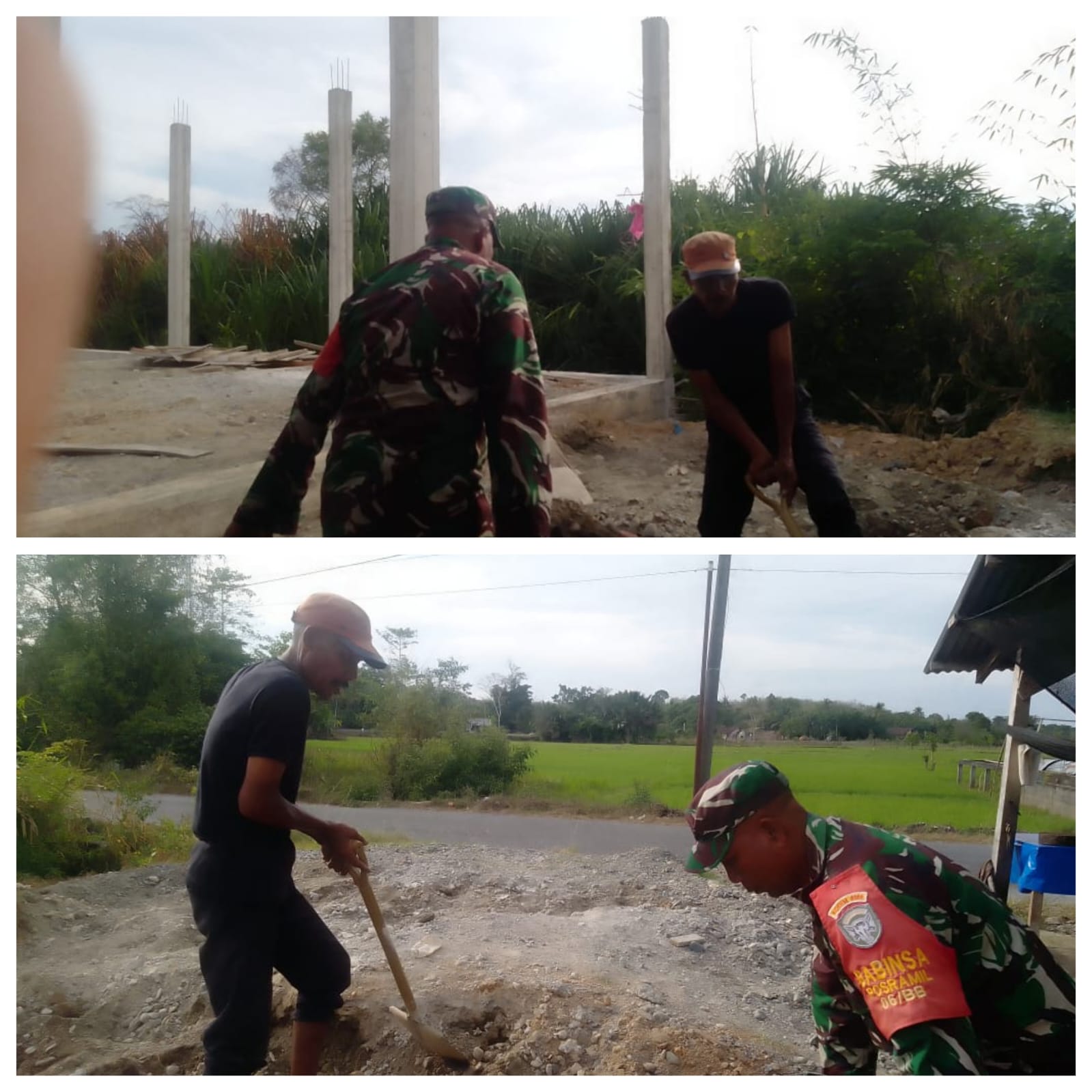 Babinsa Posramil 06 Bubon membantu Membangun Rumah Warga