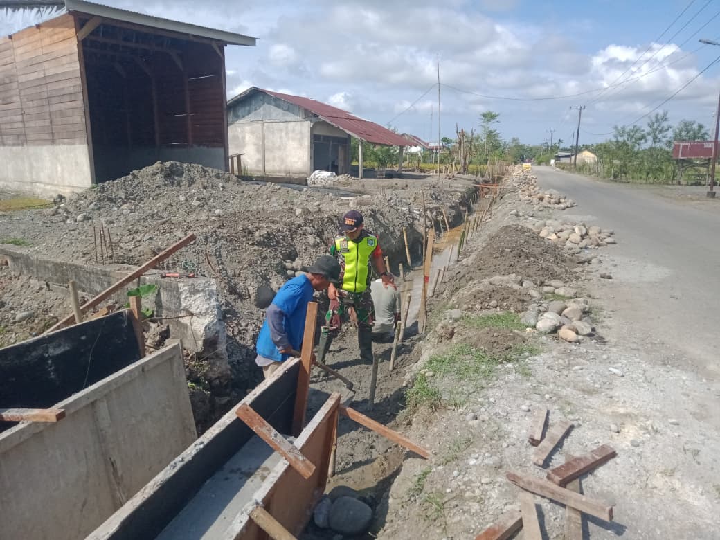 ACEH BARAT – Babinsa Posramil 06/Bubon Kodim 0105/Aceh Barat, Sertu Pendi, melaksanakan kegiatan karya bakti sebagai wujud kebersamaan dan kepedulian seorang Babinsa dalam mengatasi kesulitan rakyat di desa binaannya. Kegiatan tersebut dilakukan dengan terjun langsung membantu warga membuat parit di Desa Beurawang, Kecamatan Bubon, Kabupaten Aceh Barat, Jumat (17/10/2025).