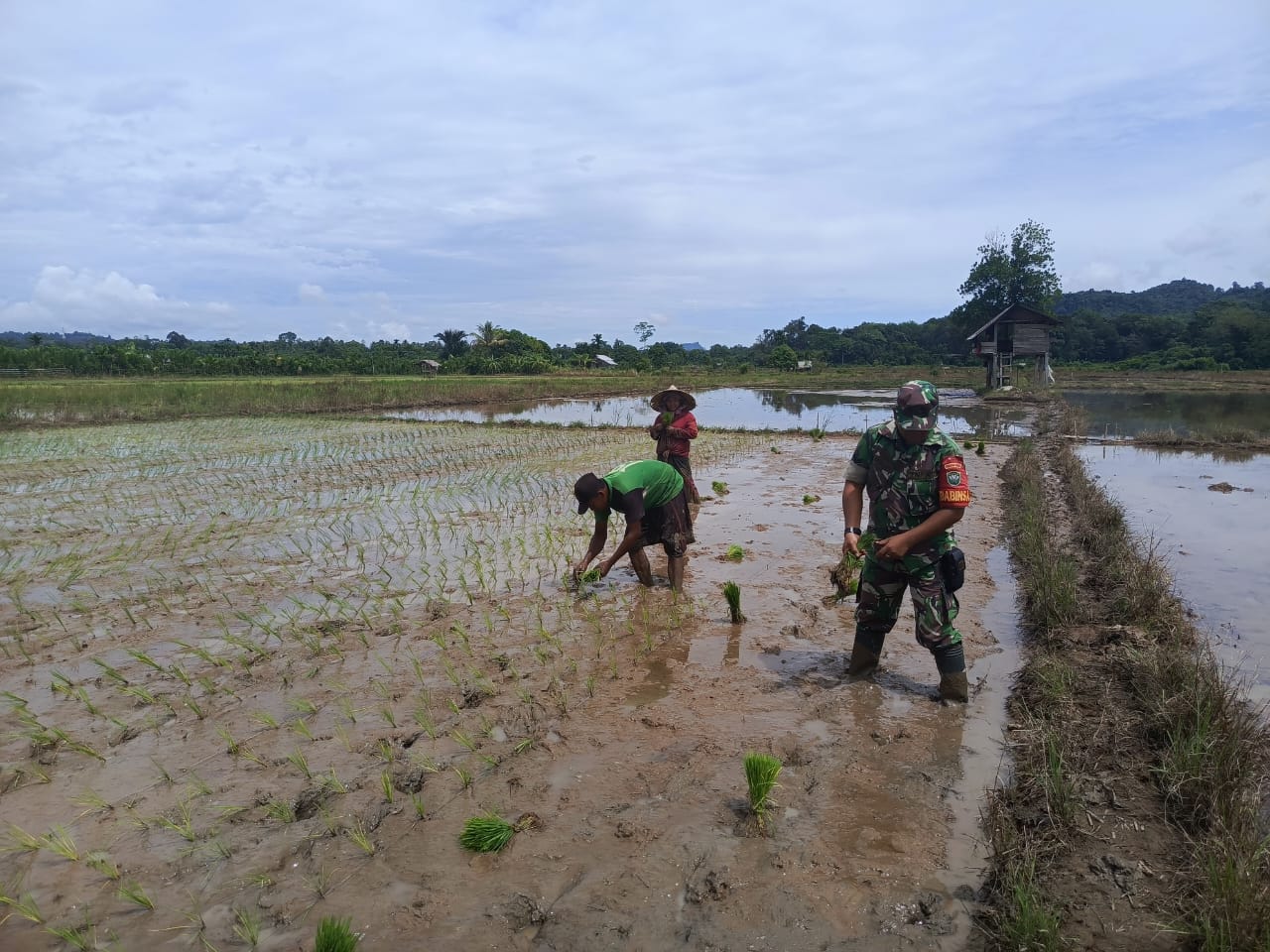 Babinsa Posramil Pasie Raya Dampingi Petani Tanam Padi di Desa Ceuraceu