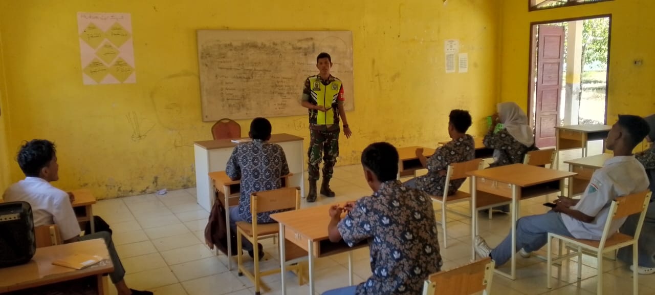 Babinsa Ramil 11 Ajarkan Wasbang ke Siswa Siswi SMA Negri 1 Woyla Timur