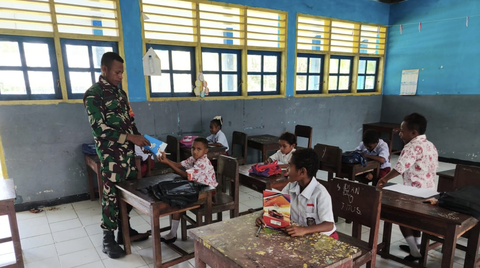 Selain itu, Babinsa juga menekankan pentingnya mematuhi perintah guru di sekolah serta orang tua di rumah. Ia berharap siswa-siswi bisa belajar dengan giat agar cita-cita mereka dapat tercapai di masa depan. Kegiatan ini mendapat sambutan hangat dari Kepala Sekolah SDN Inpres Kampung Waenami, Bapak Cicilia, dan para guru yang turut mengucapkan terima kasih atas perhatian Babinsa terhadap pendidikan anak-anak.