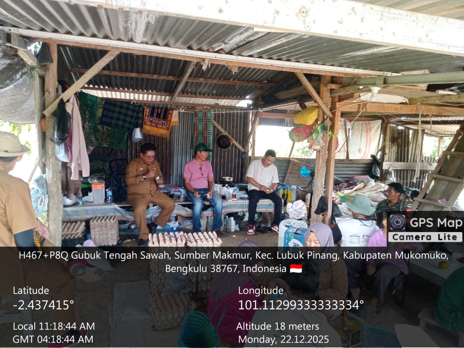 Pada Senin, 22 Desember 2025, Serda Detot Alpian dari Babinsa Ramil 428-01/MM melakukan peninjauan lokasi untuk pembangunan sumur bor di Desa Sumber Makmur, Kecamatan Lubuk Pinang. Kegiatan ini dimulai sekitar pukul 09.00 WIB dan bertujuan untuk menentukan titik nol di lahan kandang kambing yang dimiliki oleh Abdul Wahid.
