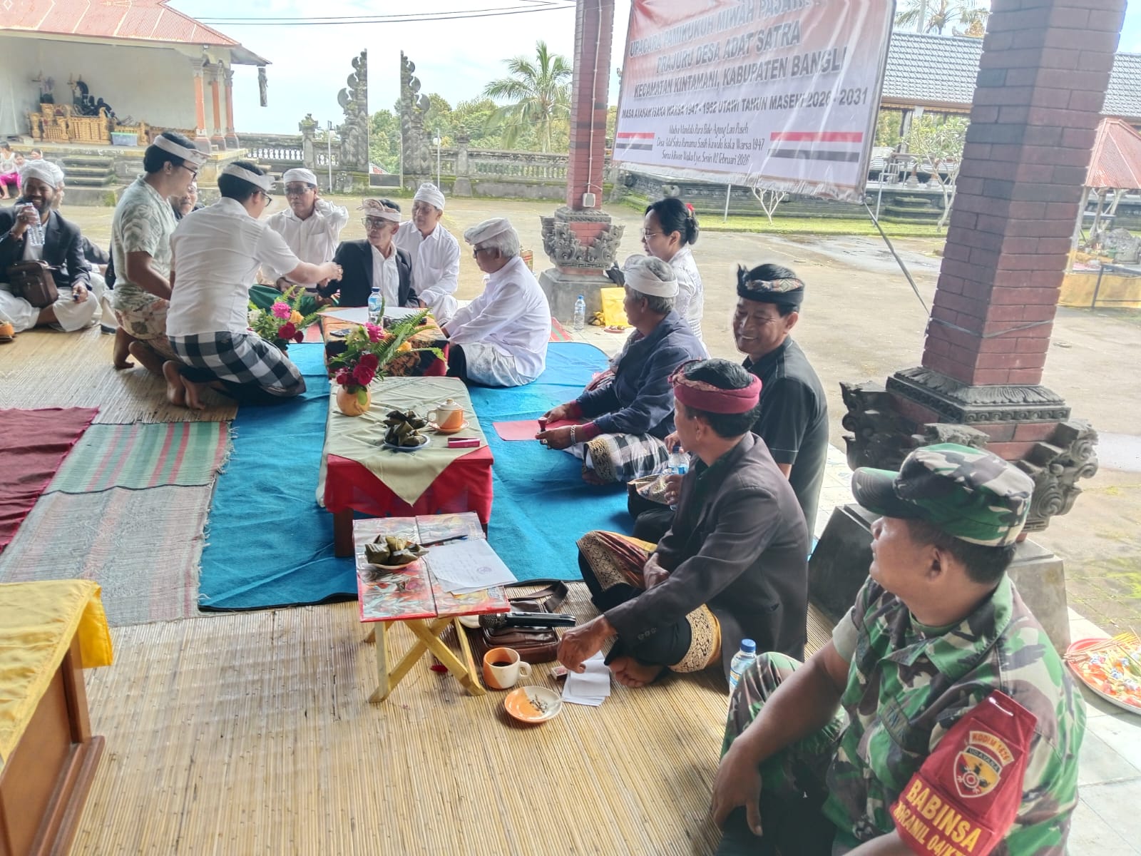 Acara ini dihadiri oleh berbagai tokoh, termasuk Ketua Majelis Desa Adat (MDA) Kabupaten Bangli, Ketua MDA Kecamatan Kintamani, serta Kepala Desa dan para Prajuru Desa Satra. Kehadiran Babinsa dalam upacara ini memiliki makna simbolis, menunjukkan dukungan TNI AD terhadap pelestarian budaya dan adat Bali.