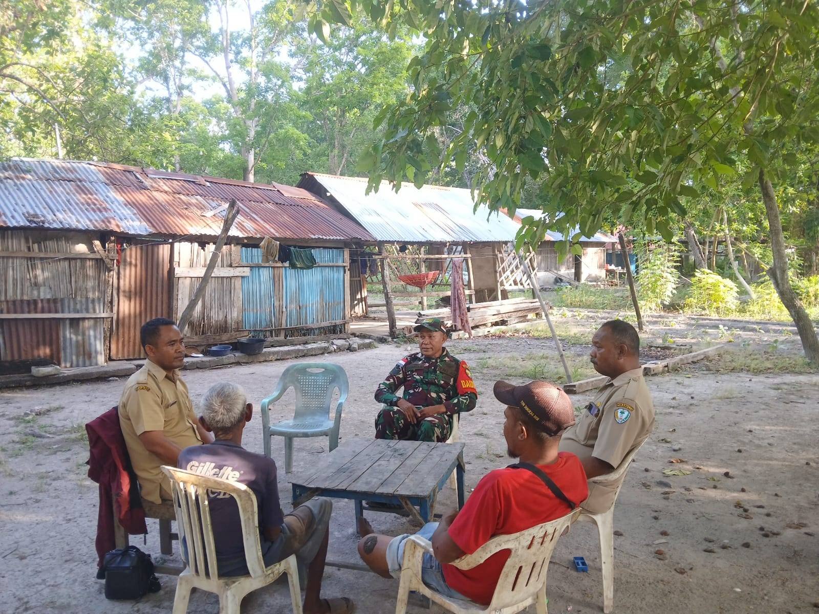 NTT-Kefamenanu, Senin 24 November 2025, Babinsa Koramil 1618-04/Bisel, Serka Yohanes Banfatin, melaksanakan kegiatan Komunikasi Sosial (Komsos) bersama petugas Pertanian serta Warga binaan di Desa Ainiut, Kecamatan Insana, Kabupaten Timor Tengah Utara (TTU).