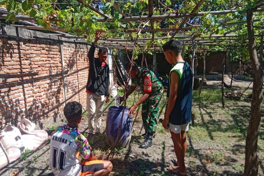 Kegiatan pendampingan yang dilakukan Babinsa Serma Duarte kali ini dengan melakukan pemberian pupuk kandang pada tanaman anggur yang mana hal ini dilakukan setiap dua minggu sekali.