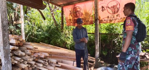 SUMBA BARAT – Sertu Arifudin, seorang anggota Babinsa dari Koramil 02/Walakaka, Kodim 1613/Sumba Barat, mengunjungi warga di desa binaan yang baru saja menyelesaikan panen padi, di Desa Harona Kalla, Kecamatan Laboya Barat, pada hari Sabtu (04/04/2026).