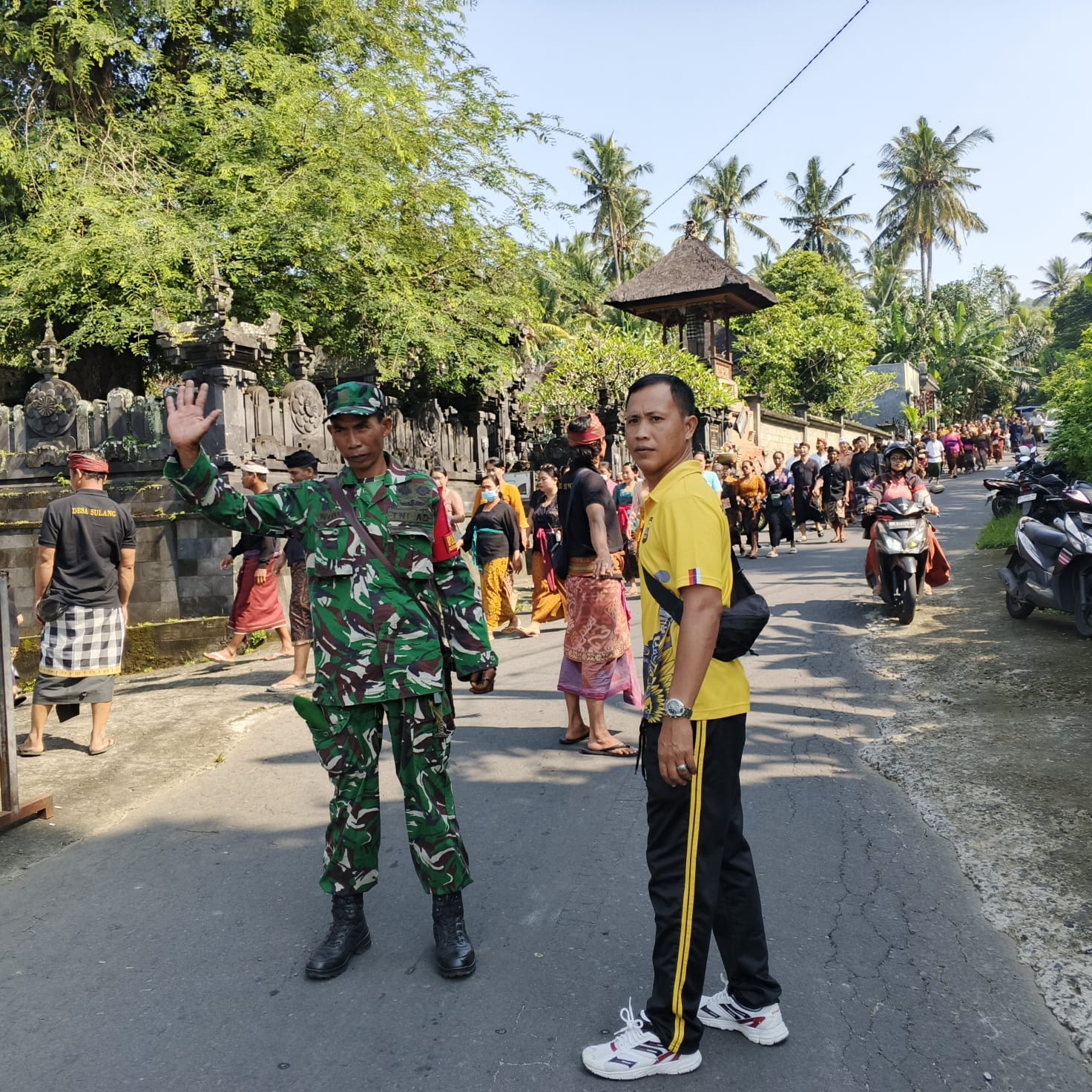 Serka Nyoman Suarsana, Babinsa setempat, ikut hadir dalam acara tersebut. Ia berkolaborasi dengan Bhabinkamtibmas dan pecalang untuk memastikan keamanan dan kelancaran proses pemakaman. Pemakaman ini berlangsung di lokasi yang sederhana, namun penuh makna di mana bayi tersebut telah dirawat di Rumah Sakit Grha Bhakti Medika (GBM) Klungkung sebelum mengembuskan napas terakhirnya.